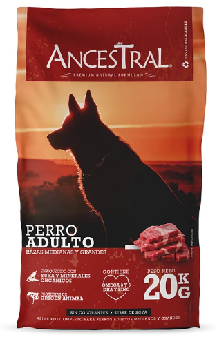 Ancestral Adulto para razas medianas y grandes está diseñado para satisfacer las necesidades de perros adultos con una nutrición completa y balanceada. Inspirado en su conexión con la naturaleza y su esencia ancestral, este alimento contribuye a mantener su vitalidad, fuerza y salud general.